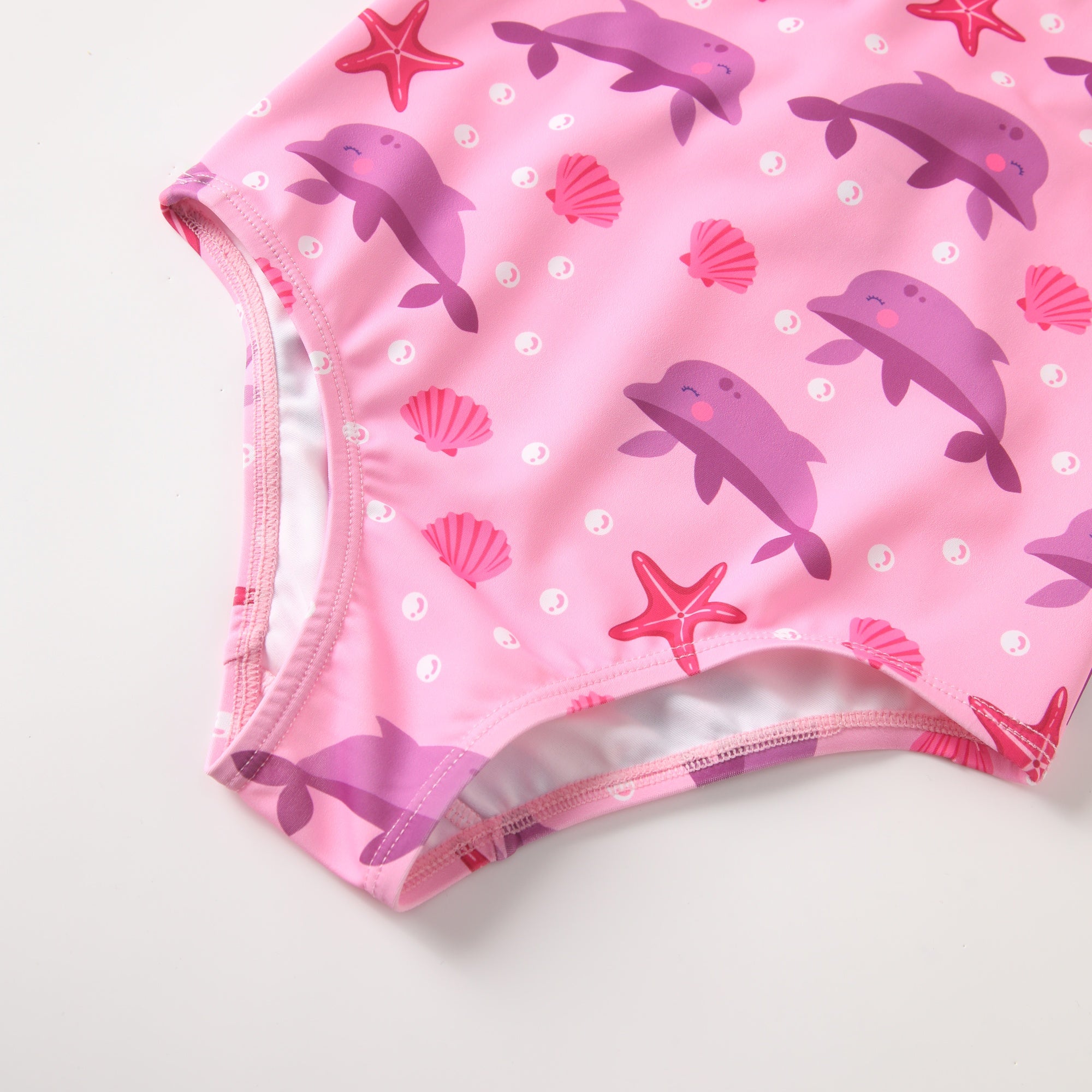 Available in playful Pink Dolphin and Purple Unicorn prints, this adorable swimming costume adds colour and personality to swim time. With sizes from 6-12 months to 2-3 years, it's perfect for growing little swimmers.